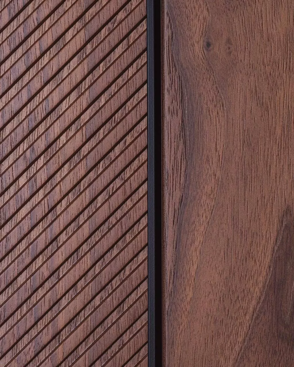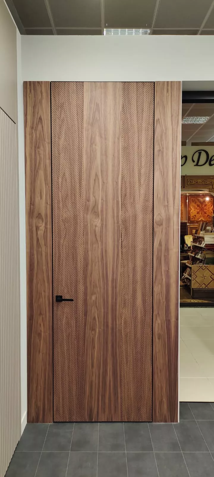 Коллекция COMBO в современном стиле выделяется частой глубокой фрезеровкой на полотнах. Двери коллекции могут быть изготовлены как в отделке из ламельного шпона американского ореха или натурального дуба, так и окрашены многослойной матовой эмалью.