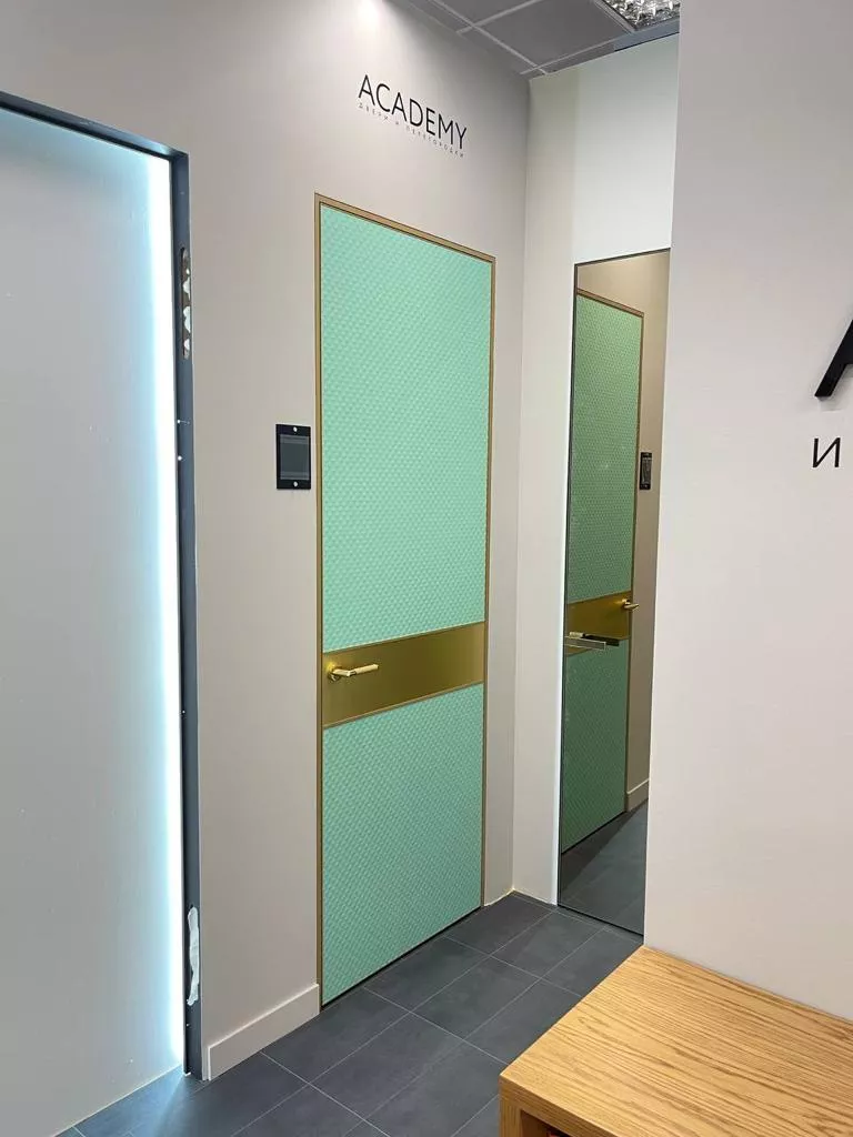 Стиль арт-деко отличает исключительно строгая и четкая геометрия форм, правильные орнаменты, вертикальные и горизонтальные линии. Кроме этого, энергичные оттенки и сочетания цветов, которые вызывают положительные эмоции, выделяя межкомнатную дверь как центральный объект в интерьере.