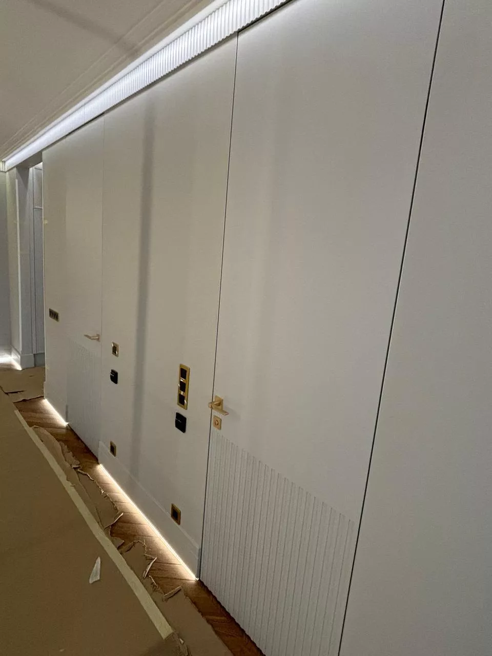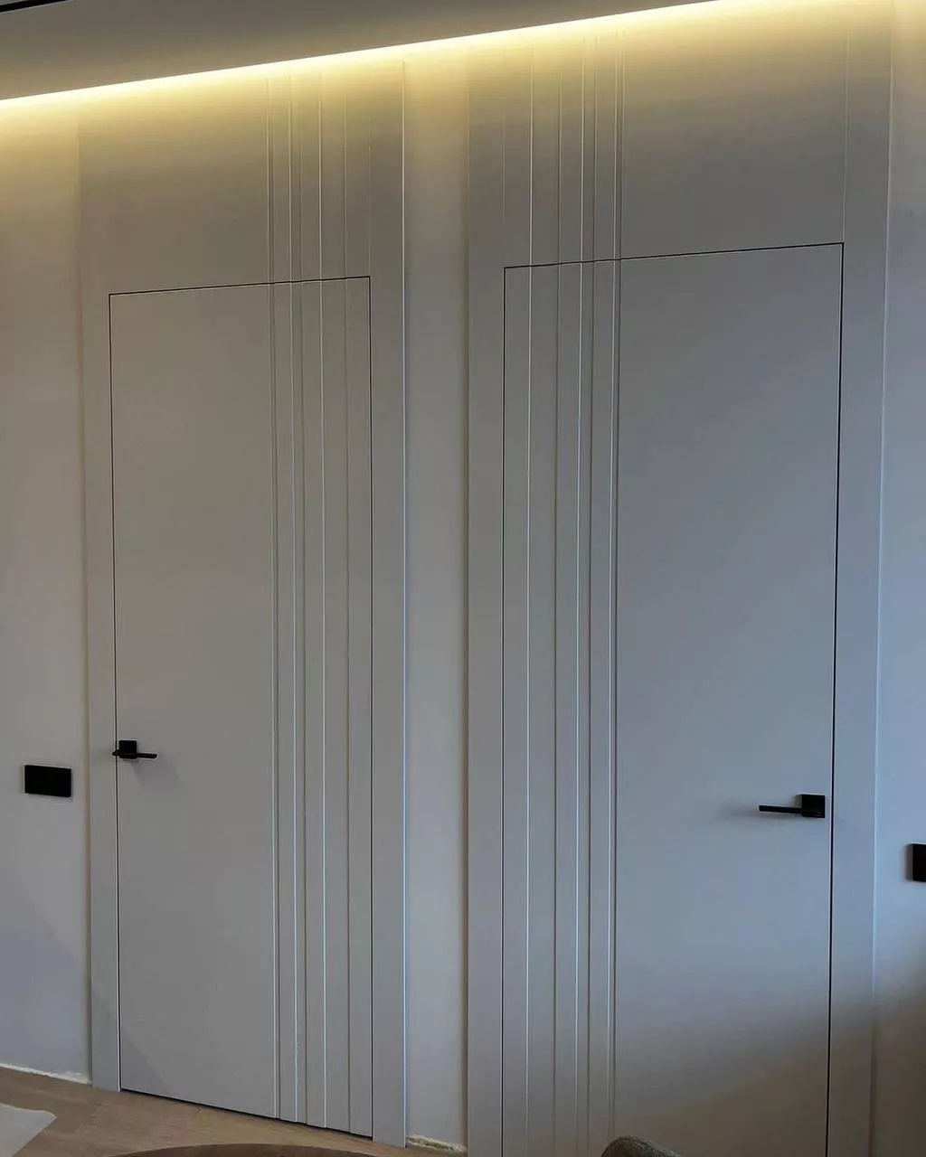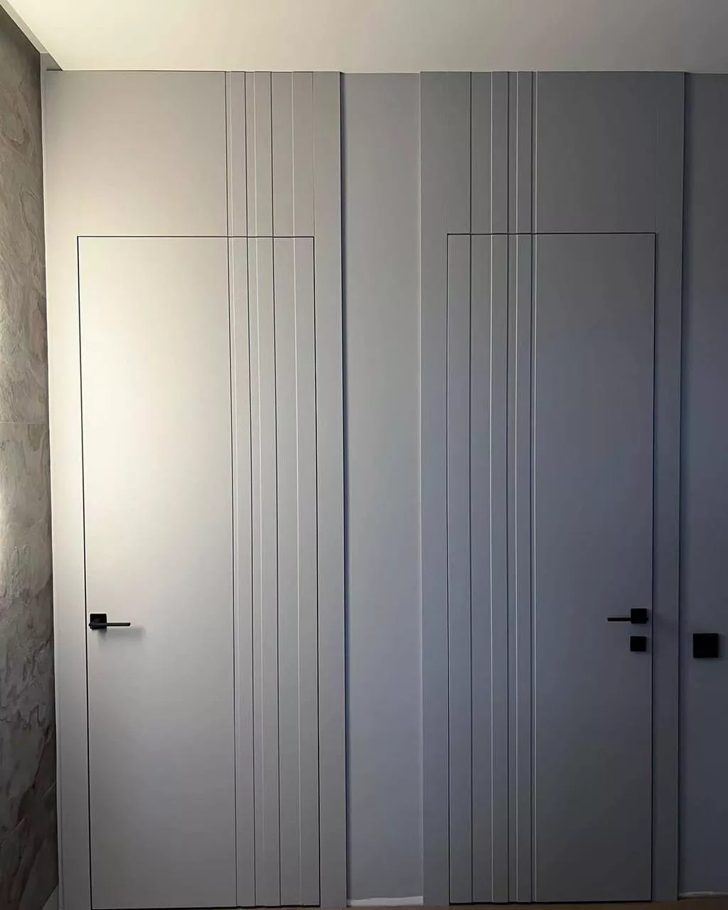 Для дверей коллекции ZERO в современном стиле, мы тщательно продумали пропорции, чтобы конструкции выглядели легко, а формы были правильных, геометрических очертаний. Основной материал отделки коллекции - монохромное эко-покрытие с эффектом софт-тач.