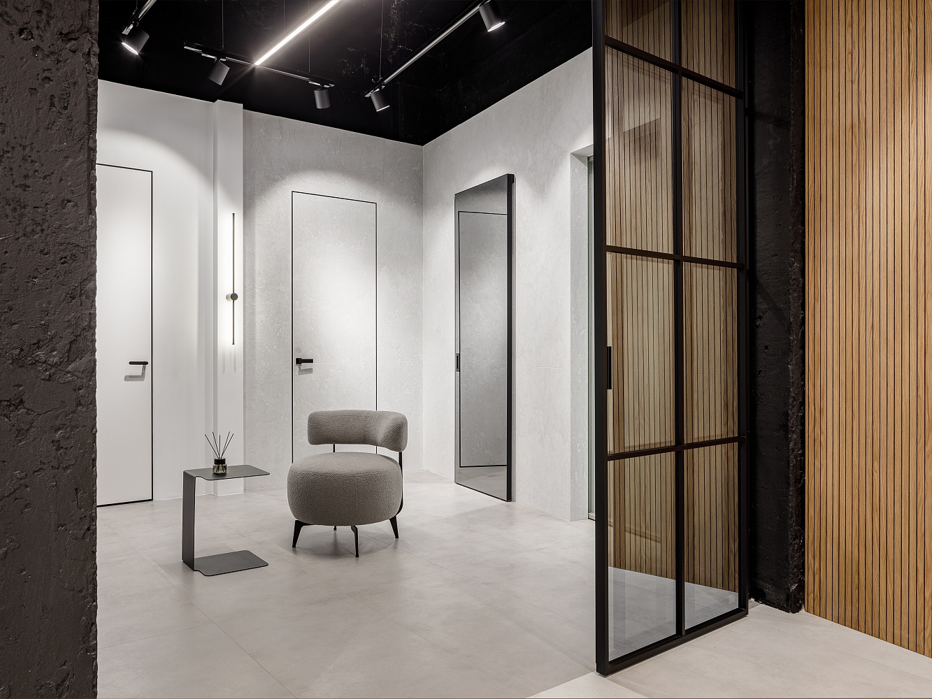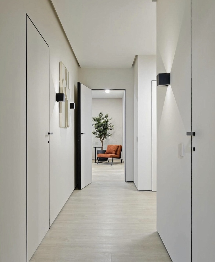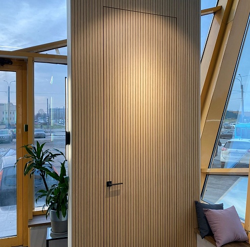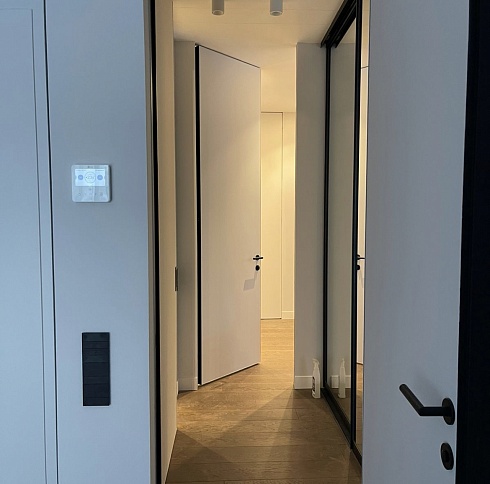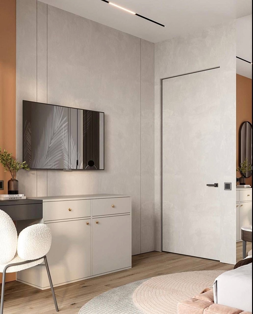 «Двери скрытого монтажа незаменимы в интерьере, где есть стеновые панели. Они позволяют сохранить ровные линии стен и создать единое пространство помещения.»